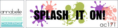 I was able to get some more birthday cards done this week. I created these two for some challenges. First, the Annabelle Stamps Splash it On challenge. I was lucky enough to win a couple of Annabelle's new stamps during their last release, including Splat Attack, which was perfect for this challenge.